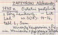 ZACZYŃSKI Aleksander 1975 v Ostatni pustelnik z Góry Zamkowej.