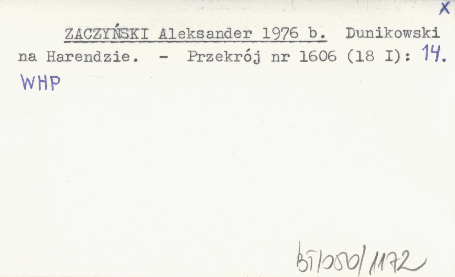 ZACZYŃSKI Aleksander 1976 b Dunikowski na Harendzie.
