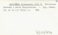 ZACZYŃSKI Aleksander 1976 b Dunikowski na Harendzie.