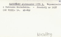 ZACZYŃSKI Aleksander 1976 i Wspomnienie o Tadeuszu Bocheńskim.