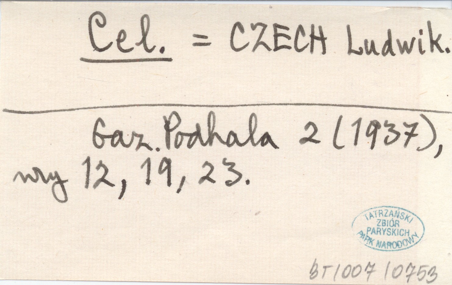Cel. CZECH Ludwik Gazeta Podhala 2 (1937), nr 12, 19, 23.