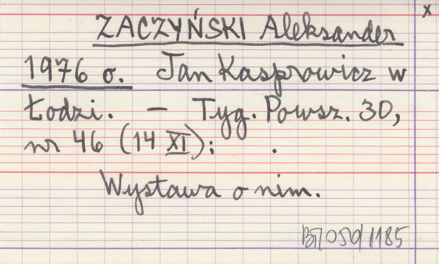 ZACZYŃSKI Aleksander 1976 o Jan Kasprowicz w Łodzi.