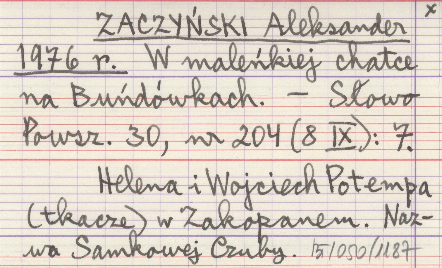 Słowo Powszechne, 30, nr 204 (8 IX): 7. Helena i Wojciech Potempa (tkacze) w Zakopanem. Nazwa Samkowej Czuby.