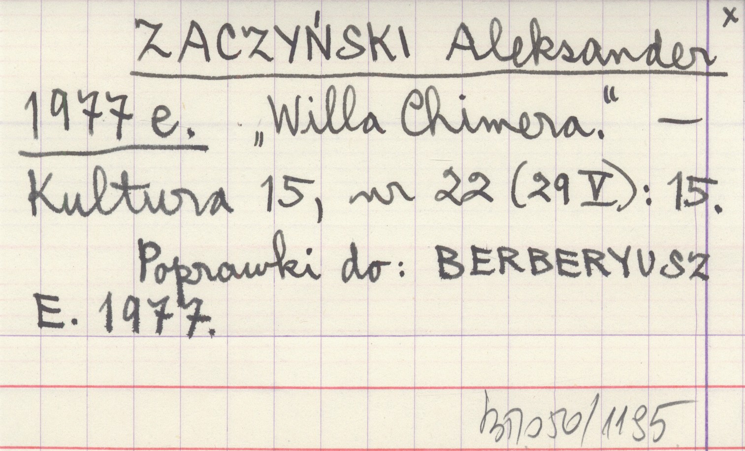 Kultura, 15, nr 22 (29 V): 15. Poprawki do: BERBERYUSZ E. 1977. BERBERYUSZ E. 1977