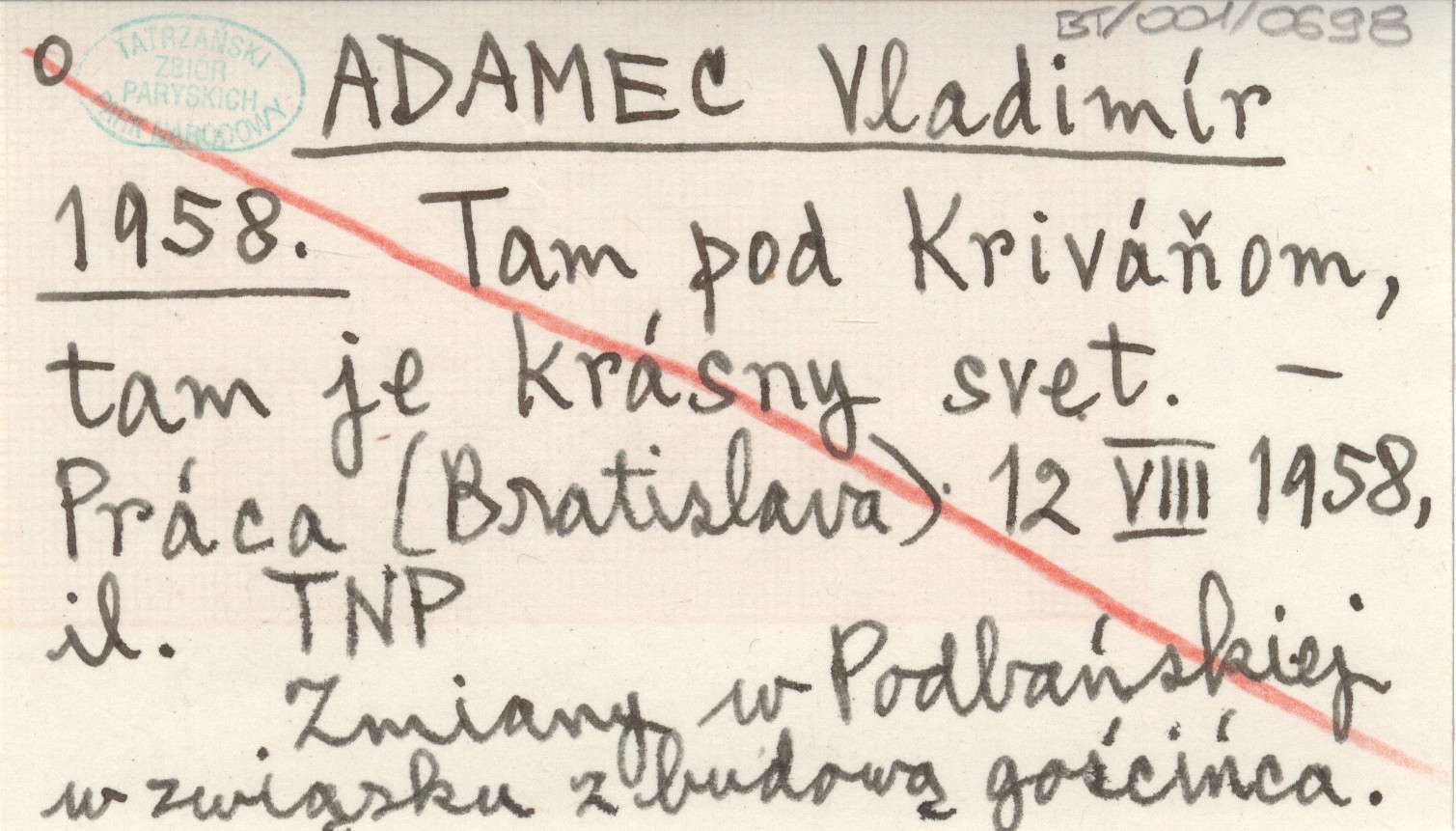 ADAMEC Vladimír 1958 Tam pod Kriváňom, tam je krásny svet.