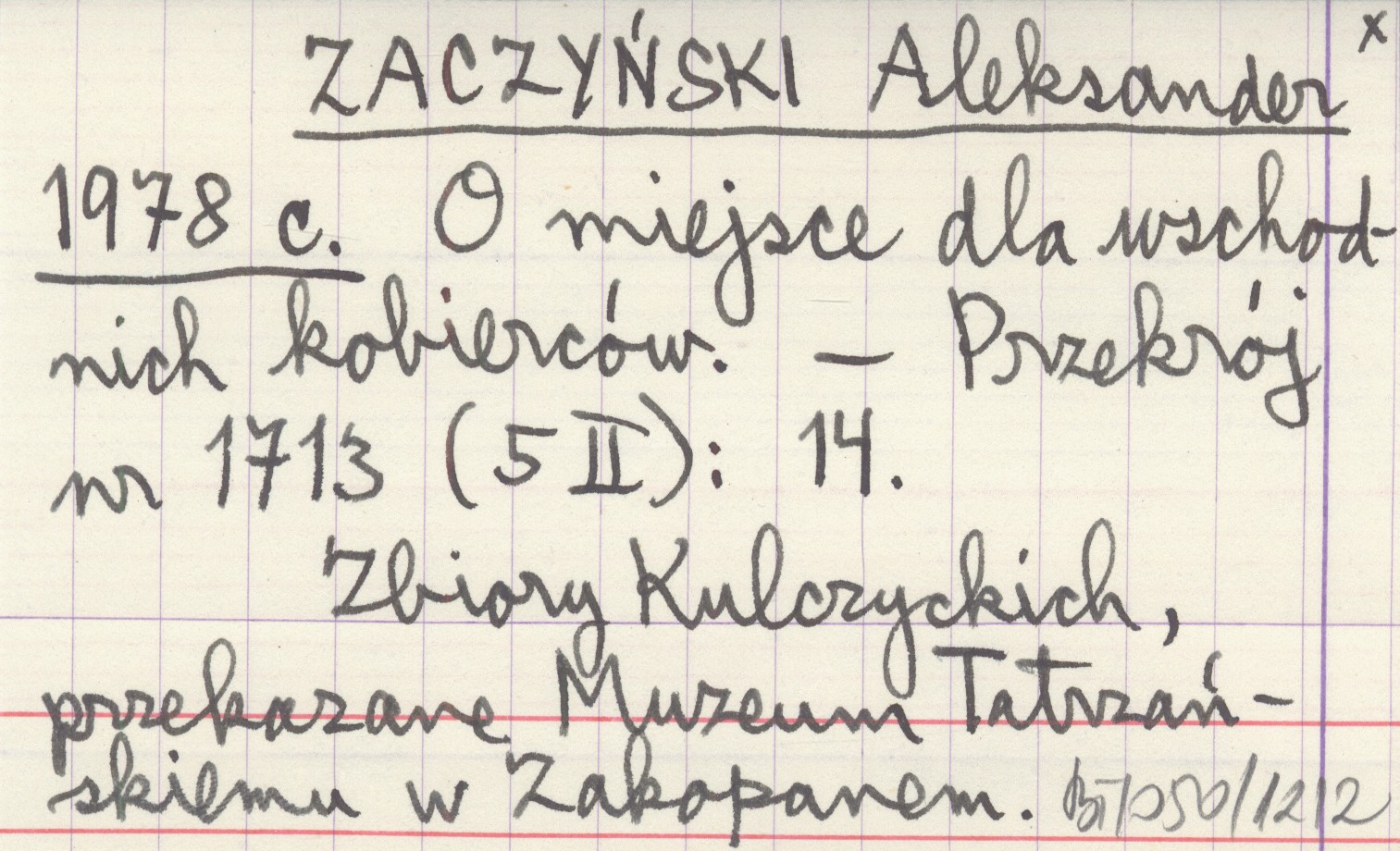 ZACZYŃSKI Aleksander 1978 c O miejsce dla wschodnich kobierców.