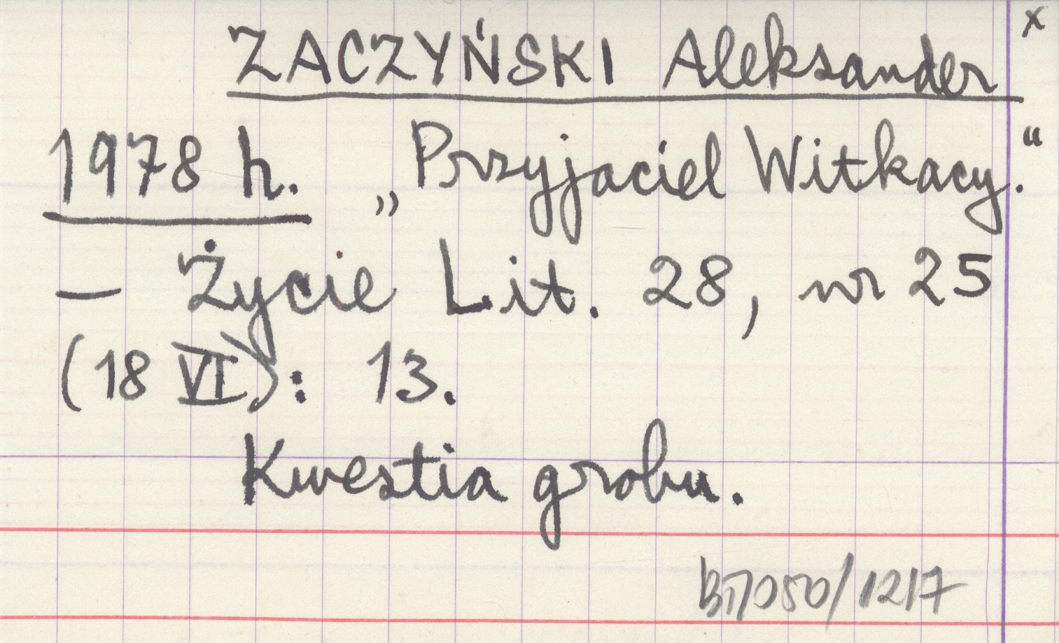 Życie Literackie, 28, nr 25 (18 VI): 13. Kwestia grobu.