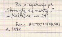 Kultura, 16, nr 29 (16 VII). Narciarstwo a ochrona przyrody tatrzańskiej. Recenzja o: dyskusji pt. "Skończyły się narty..." w Kulturze nr 24. REC: KRZYSZTOFORSKI A. 1978
