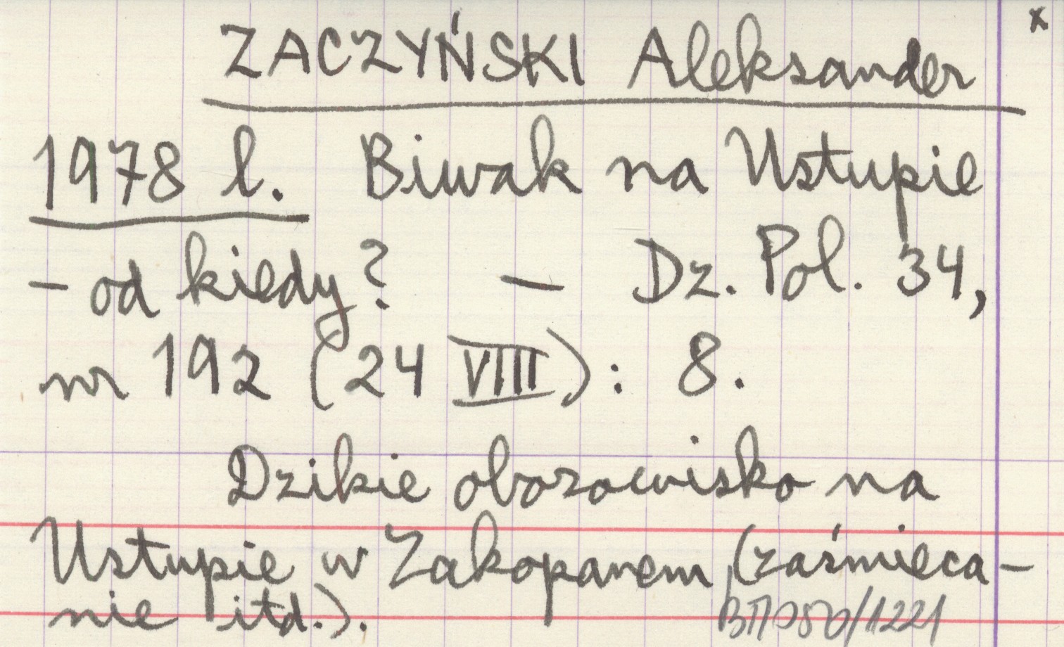 ZACZYŃSKI Aleksander 1978 l Biwak na Ustupie - od kiedy?