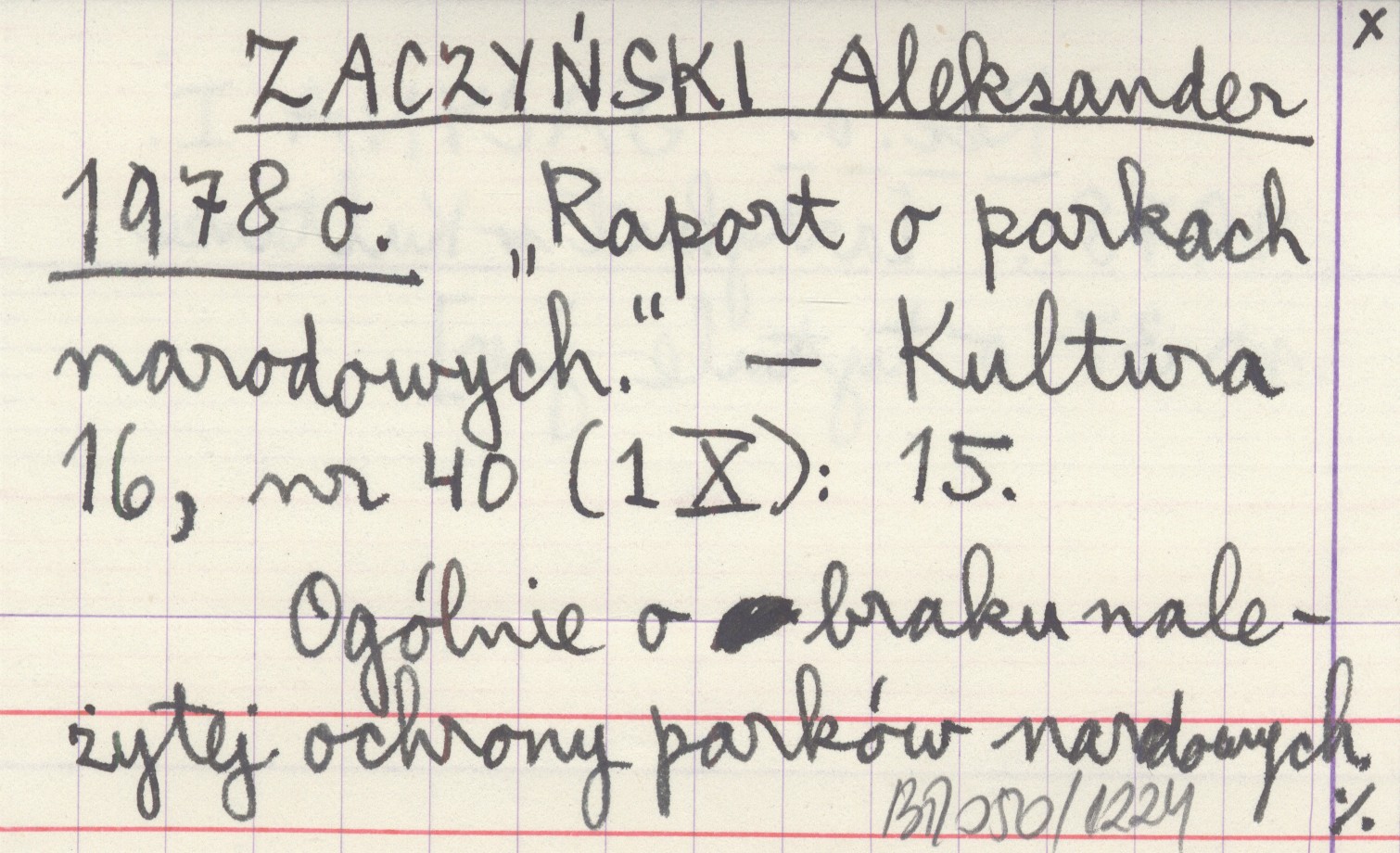 ZACZYŃSKI Aleksander 1978 o "Raport o parkach narodowych".