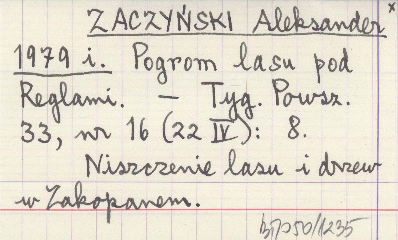 ZACZYŃSKI Aleksander 1979 i Pogrom lasu pod Reglami.