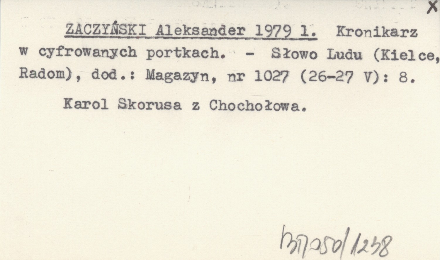 ZACZYŃSKI Aleksander 1979 l Kronikarz w cyfrowanych portkach.