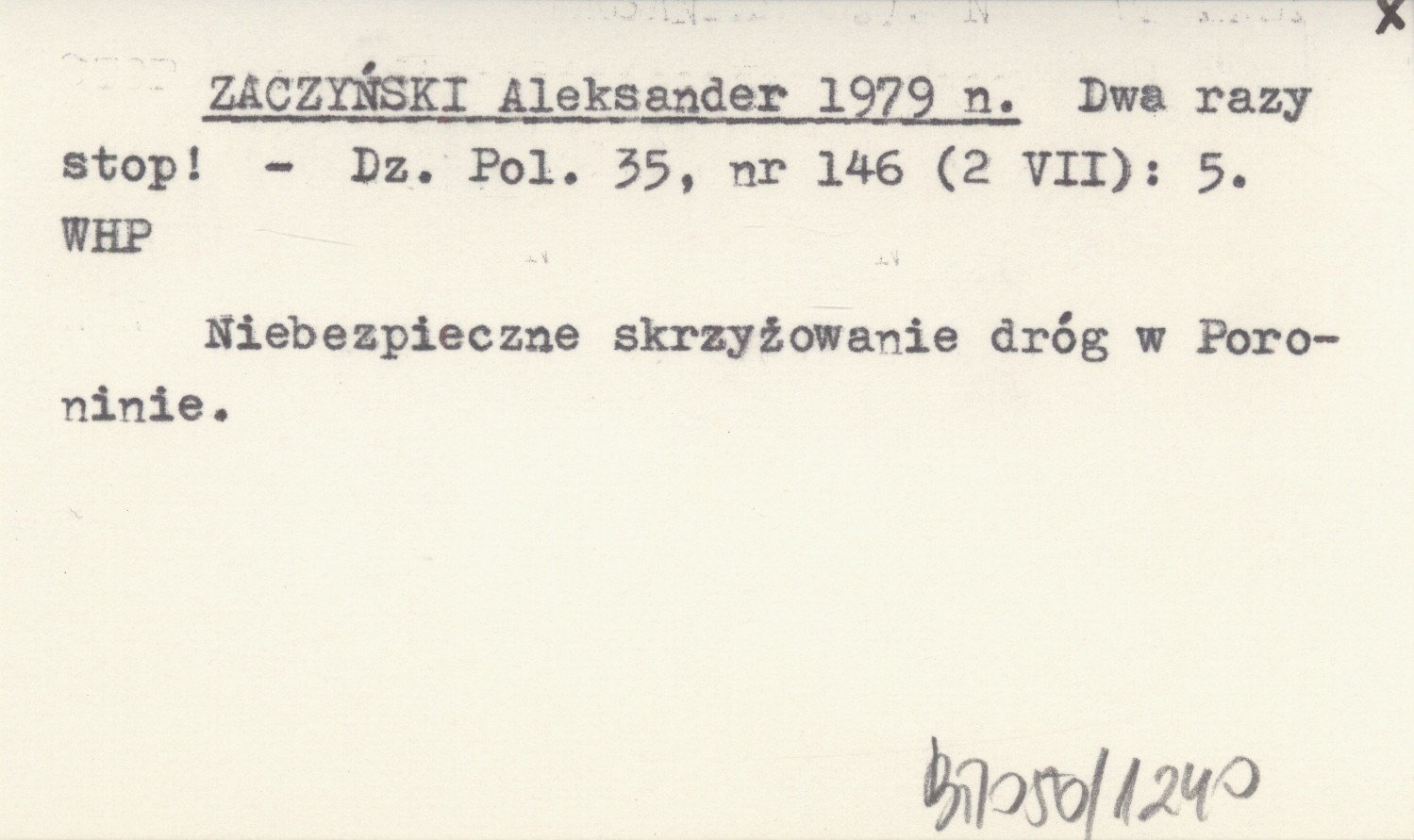 Dziennik Polski, 35, nr 146 (2 VII): 5. Niebezpieczne skrzyżowanie dróg w Poroninie.