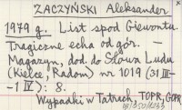 ZACZYŃSKI Aleksander 1979 g List spod Giewontu. Tragiczne echa od gór.