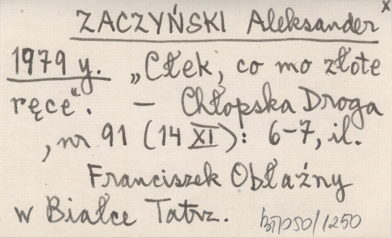 ZACZYŃSKI Aleksander 1979 y "Cłek, co mo złote ręce".