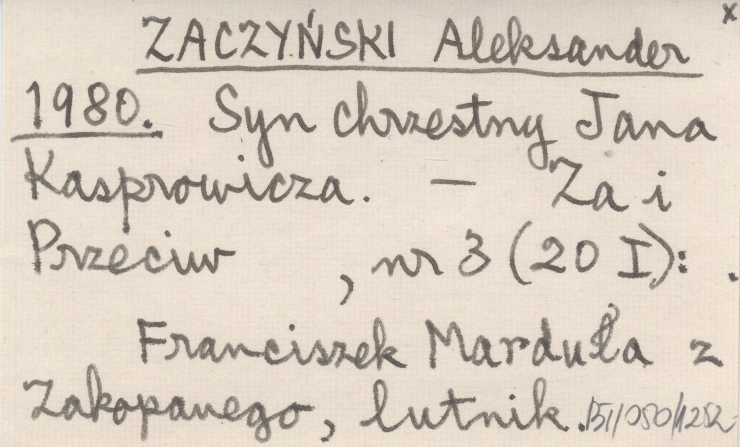 ZACZYŃSKI Aleksander 1980 Syn chrzestny Jana Kasprowicza.