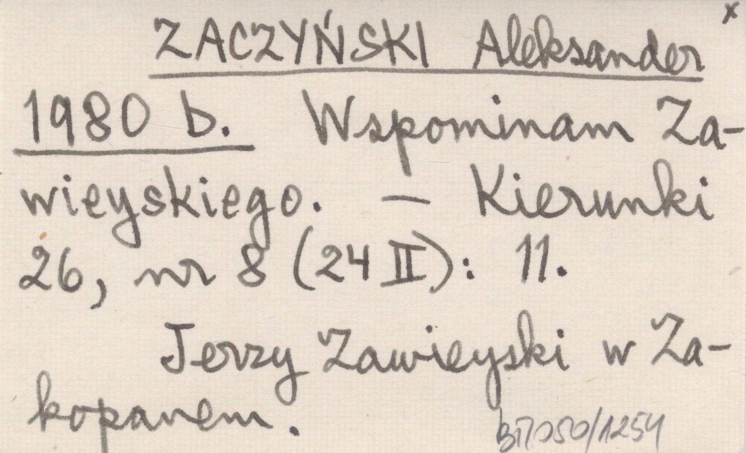 ZACZYŃSKI Aleksander 1980 b Wspominam Zawieyskiego.
