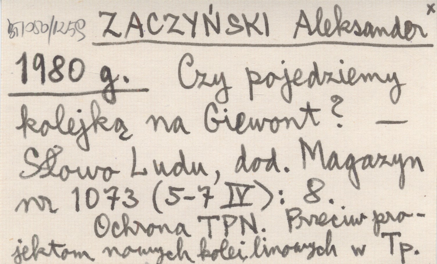 ZACZYŃSKI Aleksander 1980 g Czy pojedziemy kolejką na Giewont?