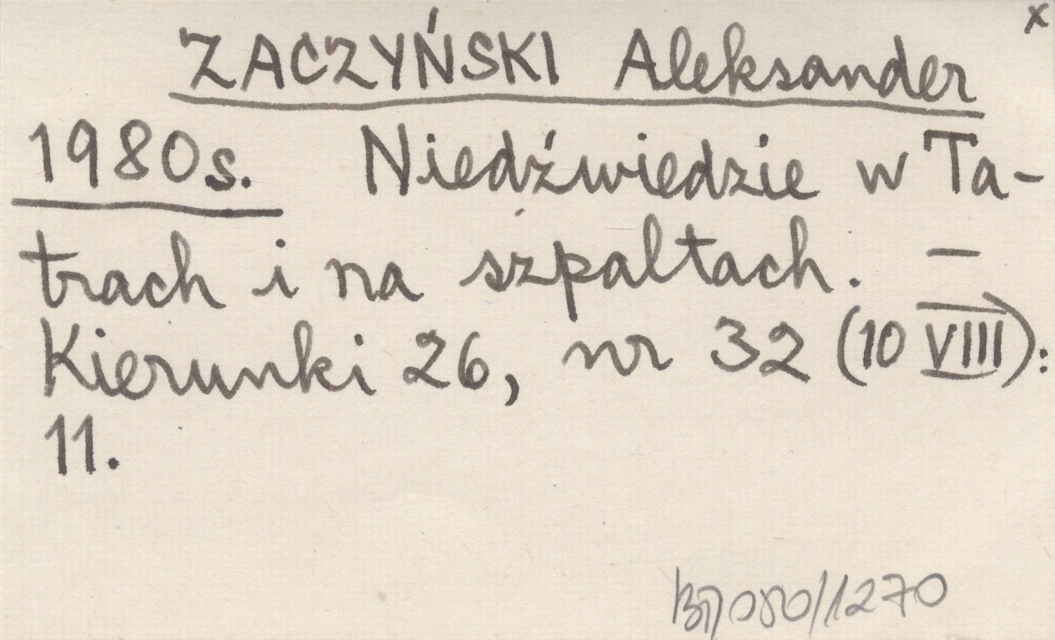 ZACZYŃSKI Aleksander 1980 s Niedźwiedzie w Tatrach i na szpaltach.