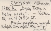ZACZYŃSKI Aleksander 1980 k "Będą Tatry i będą narty".