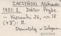 ZACZYŃSKI Aleksander 1980 l Doktor Prybe.