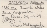 ZACZYŃSKI Aleksander 1980 m Zmarła córka Jana Kasprowicza.