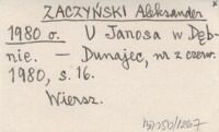 ZACZYŃSKI Aleksander 1980 o U Janosa w Dębnie.