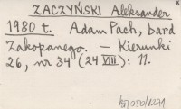 ZACZYŃSKI Aleksander 1980 t Adam Pach, bard Zakopanego.