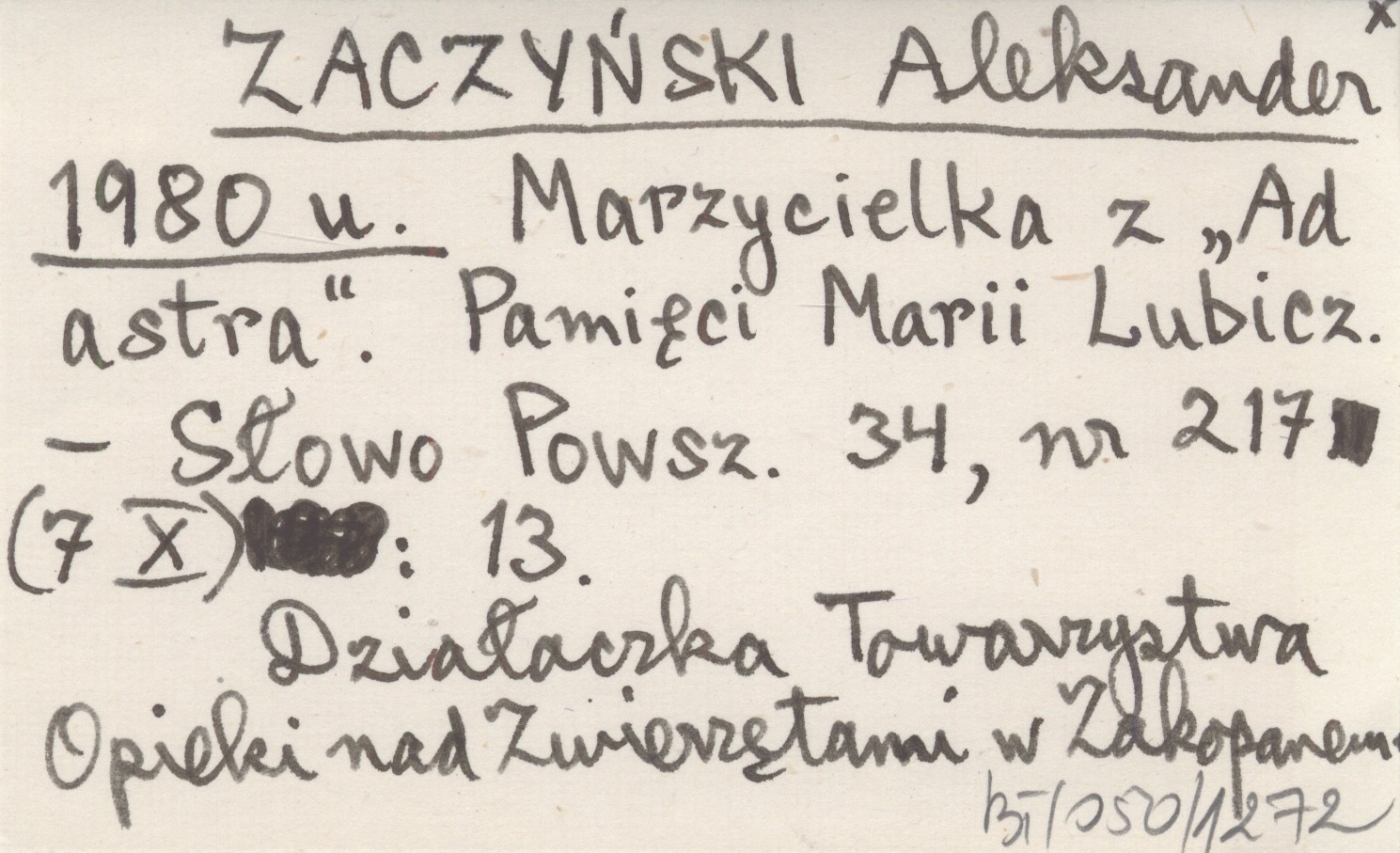 ZACZYŃSKI Aleksander 1980 u Marzycielka z "Ad astra". Pamięci Marii Lubicz.