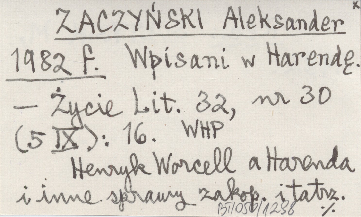 Życie Literackie, 32, nr 30 (5 IX): 16. Henryk Worcell a Harenda i inne sprawy zakopiańskie i tatrzańskie. REC: SOŁTYSIK M. 1982