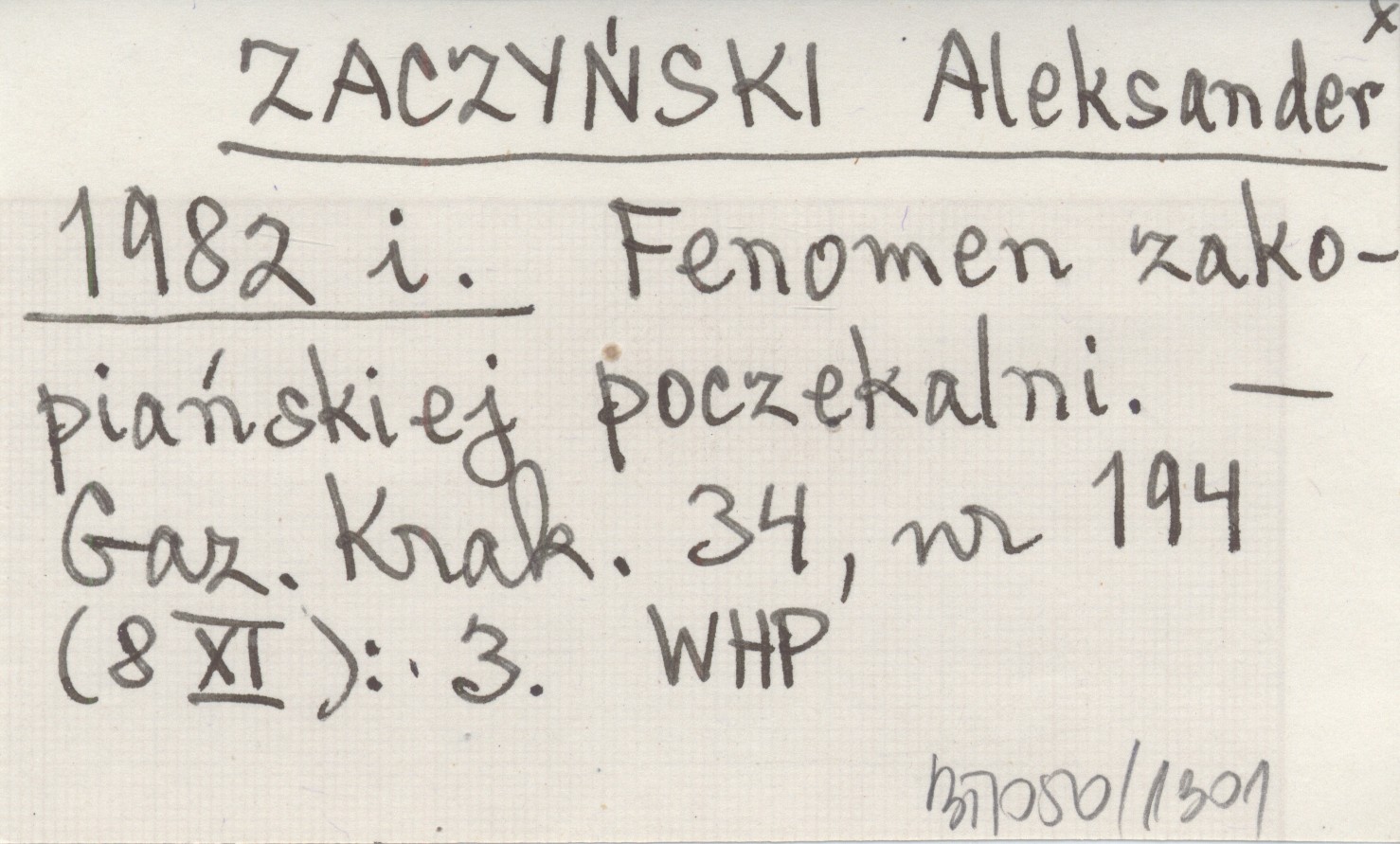 ZACZYŃSKI Aleksander 1982 i Fenomen zakopiańskiej poczekalni.