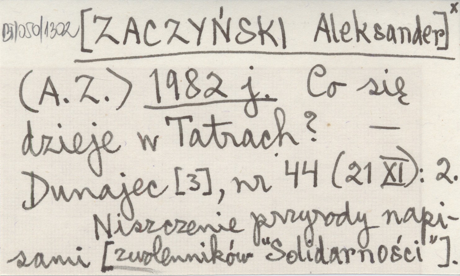 (A. Z.) [ZACZYŃSKI Aleksander] 1982 j Co się dzieje w Tatrach?
