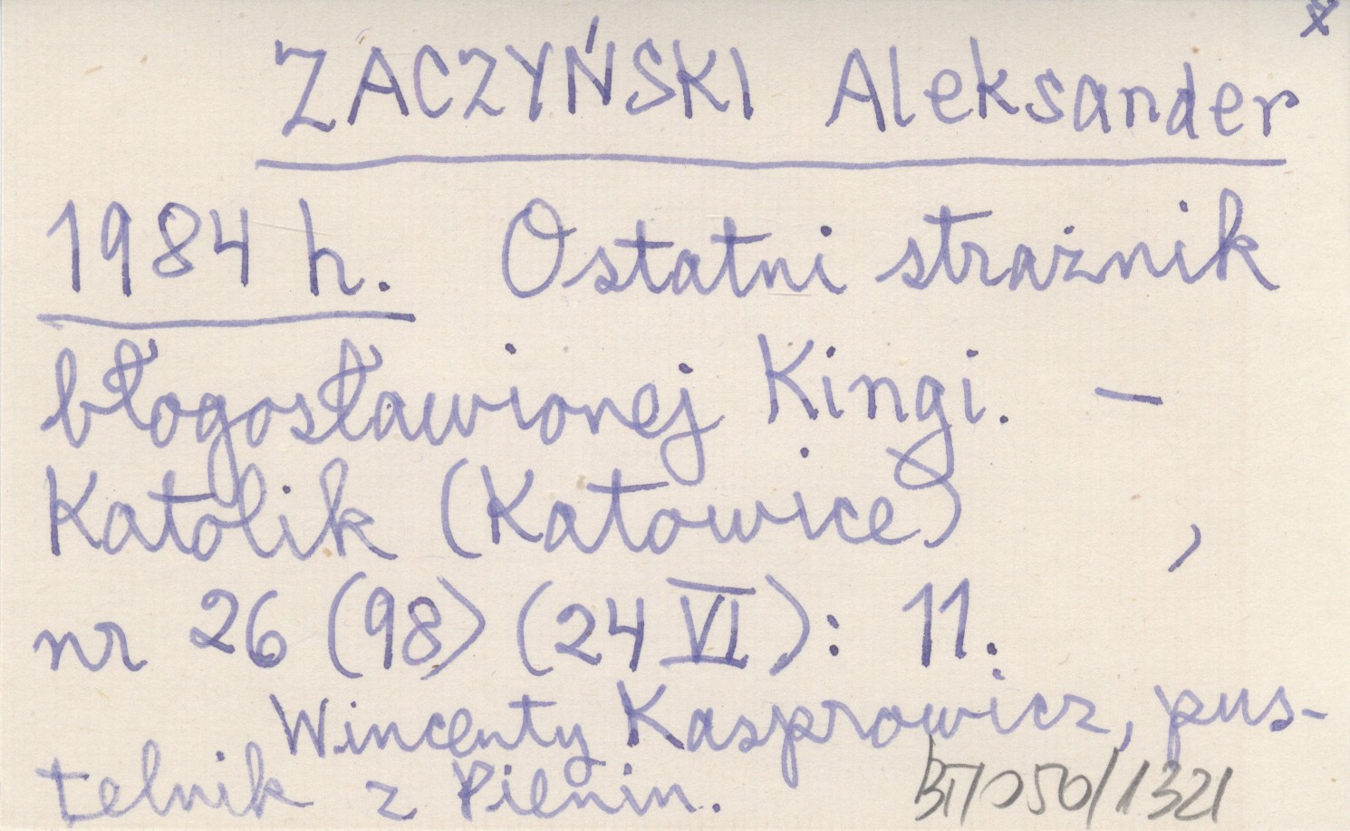 ZACZYŃSKI Aleksander 1984 h Ostatni strażnik błogosławionej Kingi.