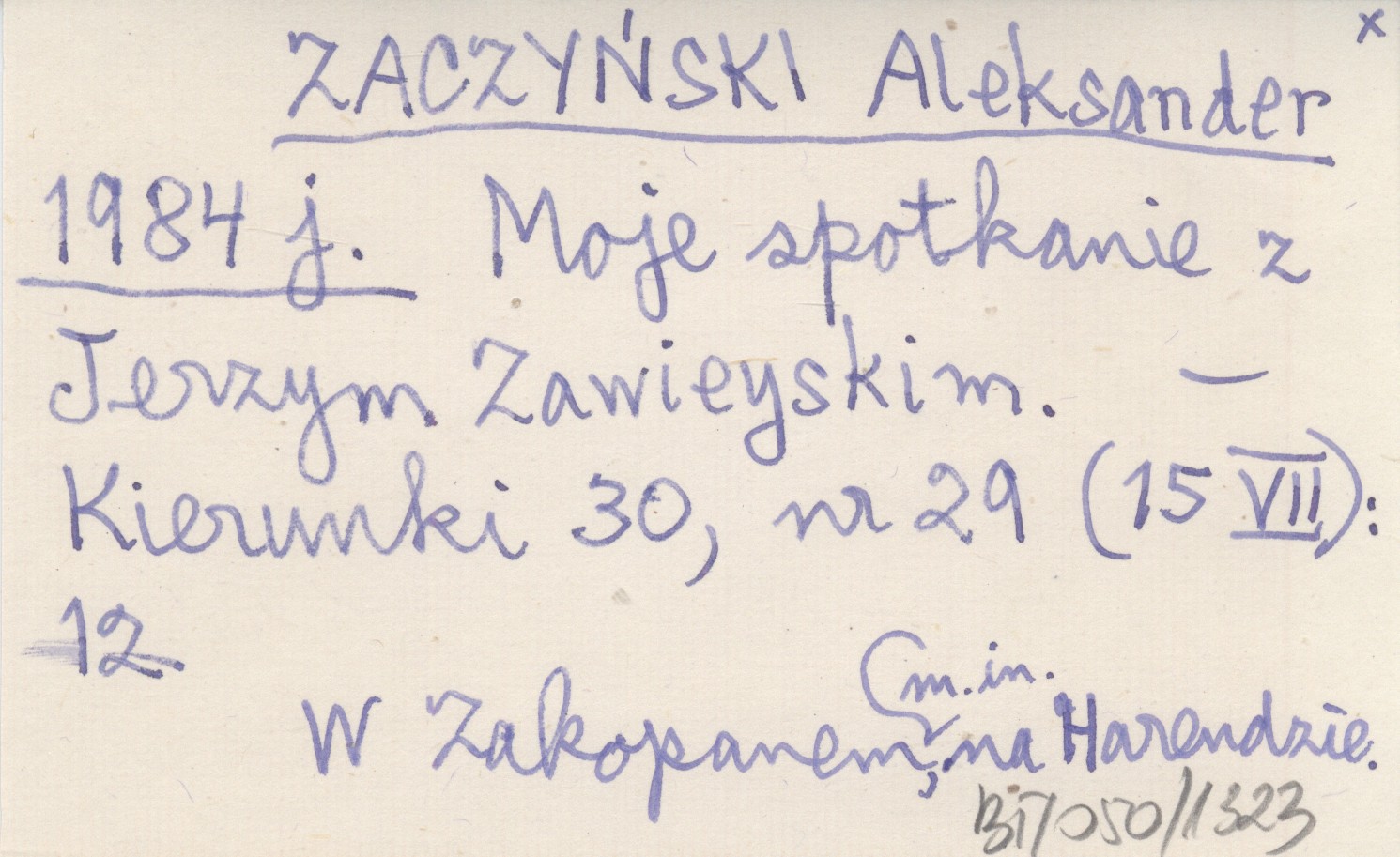 ZACZYŃSKI Aleksander 1984 j Moje spotkanie z Jerzym Zawieyskim.