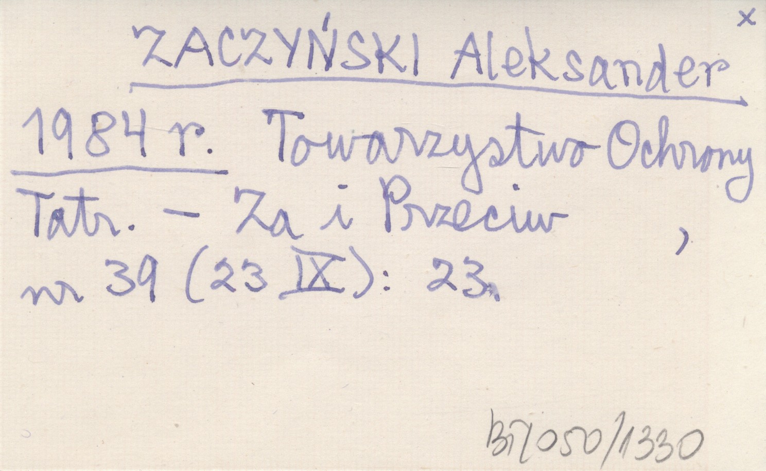 ZACZYŃSKI Aleksander 1984 r Towarzystwo Ochrony Tatr.