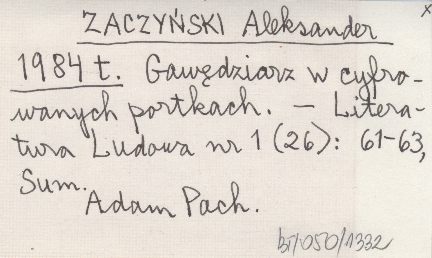 Literatura Ludowa, Nr 1 (26): 61-63, Sum. Adam Pach.