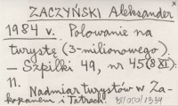 ZACZYŃSKI Aleksander 1984 v Polowanie na turystę (3-milionowego).