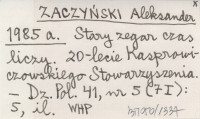 ZACZYŃSKI Aleksander 1985 a Stary zegar czas liczy. 20-lecie Kasprowiczowskiego Stowarzyszenia.