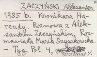 ZACZYŃSKI Aleksander 1985 b Kronikarz Harendy. Rozmowa z Aleksandrem Zaczyńskim. Rozmawiała Maria Szyszkowska.
