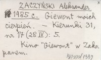 ZACZYŃSKI Aleksander 1985 f Wspomnienie.