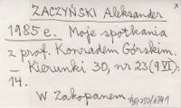 ZACZYŃSKI Aleksander 1985 e Moje spotkania z prof. Konradem Górskim.