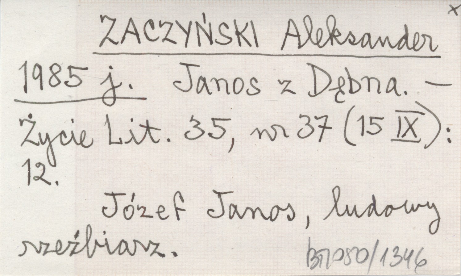 Życie Literackie, 35, nr 37 (15 IX): 12. Józef Janos, ludowy rzeźbiarz.