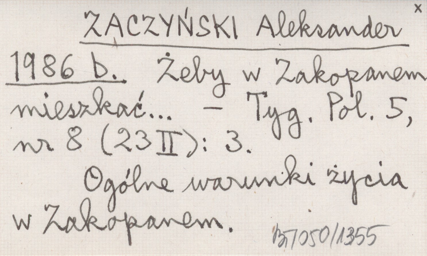 ZACZYŃSKI Aleksander 1986 b Żeby w Zakopanem mieszkać...