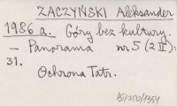 ZACZYŃSKI Aleksander 1986 a Góry bez kultury.
