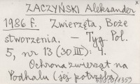 ZACZYŃSKI Aleksander 1986 f Zwierzęta, Boże stworzenia.