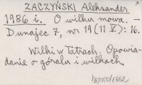 ZACZYŃSKI Aleksander 1986 i O wilku mowa.