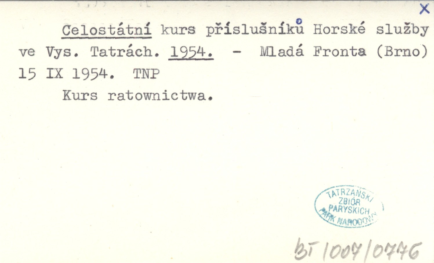 Celostátní kurs příslušníků Horské služby ve Vys. Tatrách. 1954