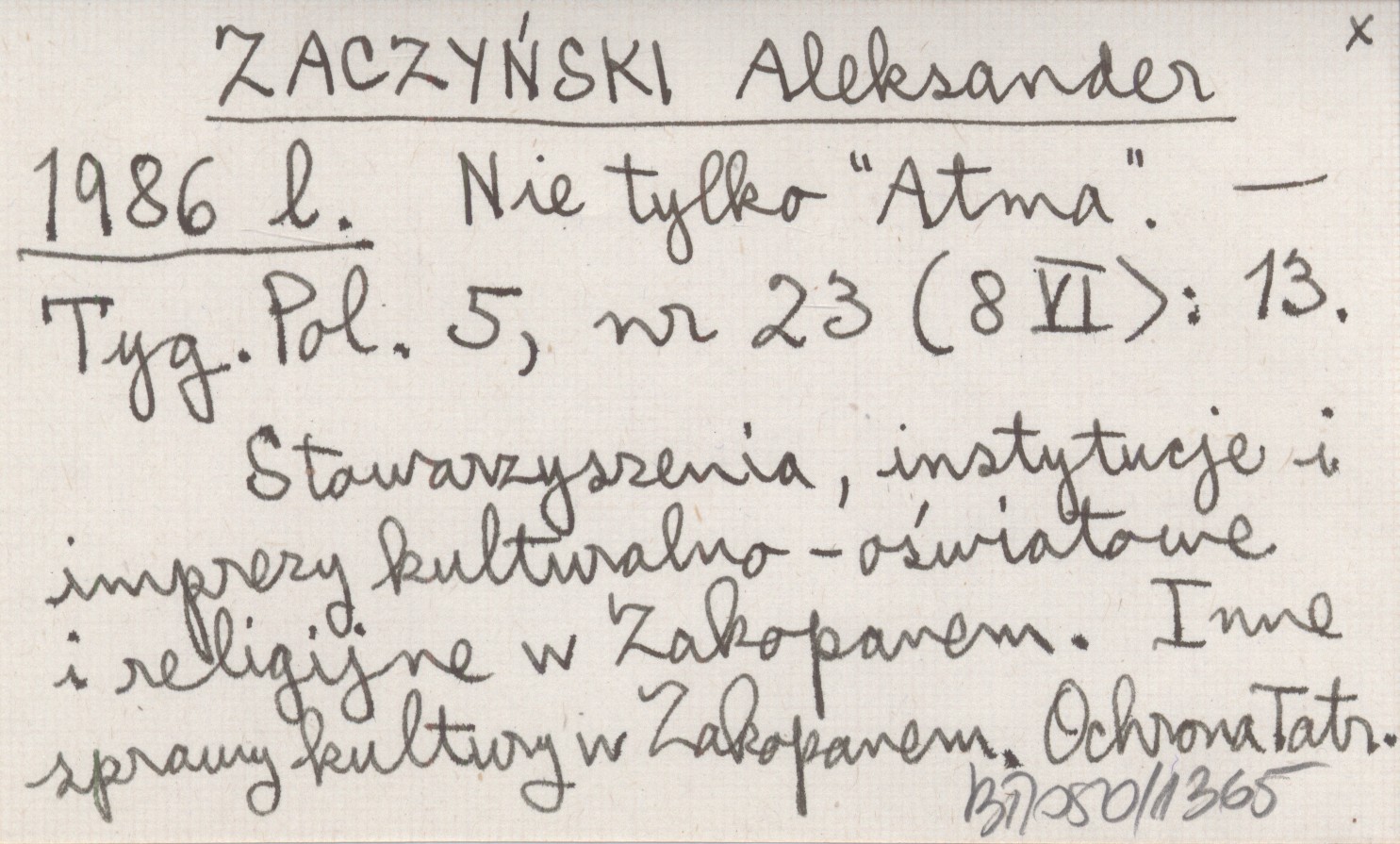 Tygodnik Polski, 5, nr 23 (8 VI): 13. Stowarzyszenia, instytucje i imprezy kulturalno-oświatowe i religijne w Zakopanem. Inne sprawy kultury w Zakopanem. Ochrona Tatr.