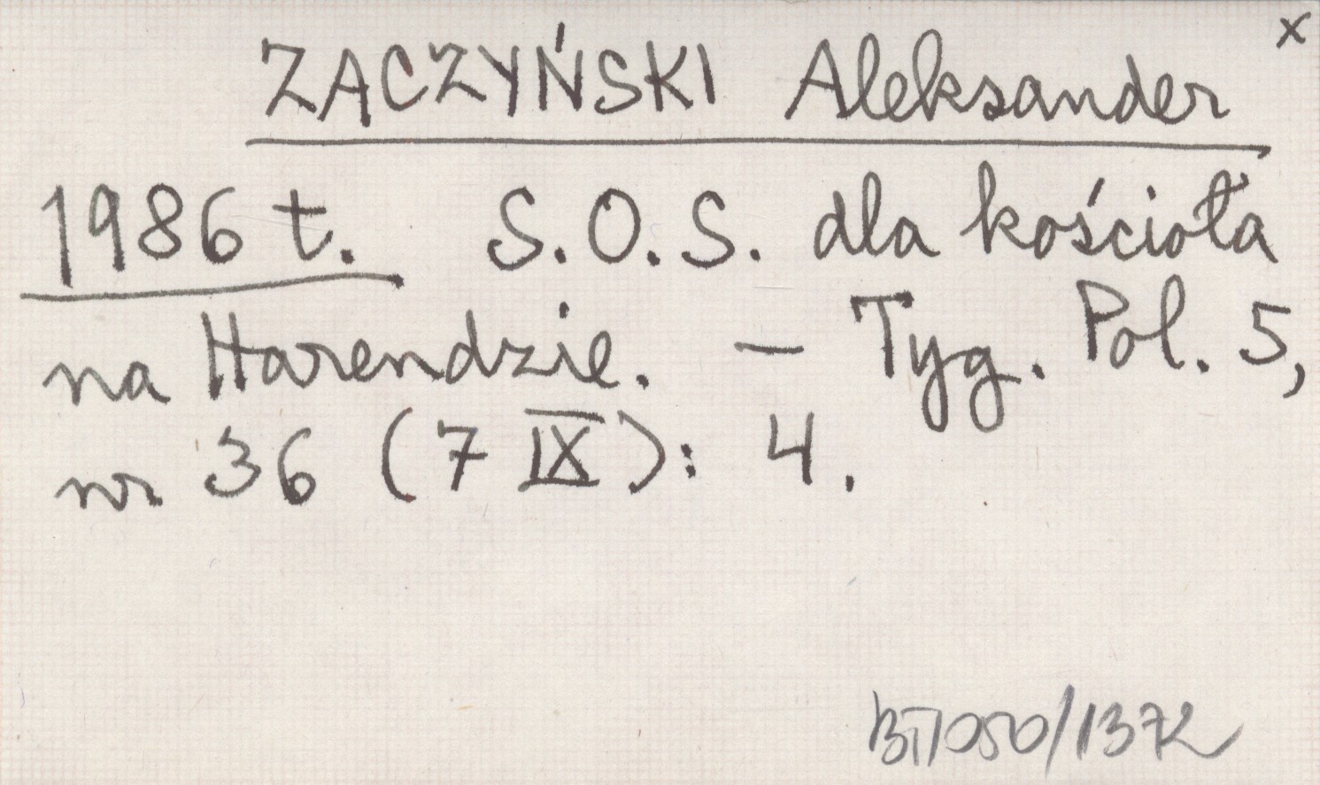 ZACZYŃSKI Aleksander 1986 t S.O.S. dla kościoła na Harendzie.