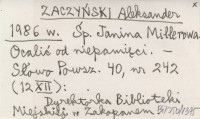 ZACZYŃSKI Aleksander 1986 w Śp. Janina Millerowa. Ocalić od niepamięci.